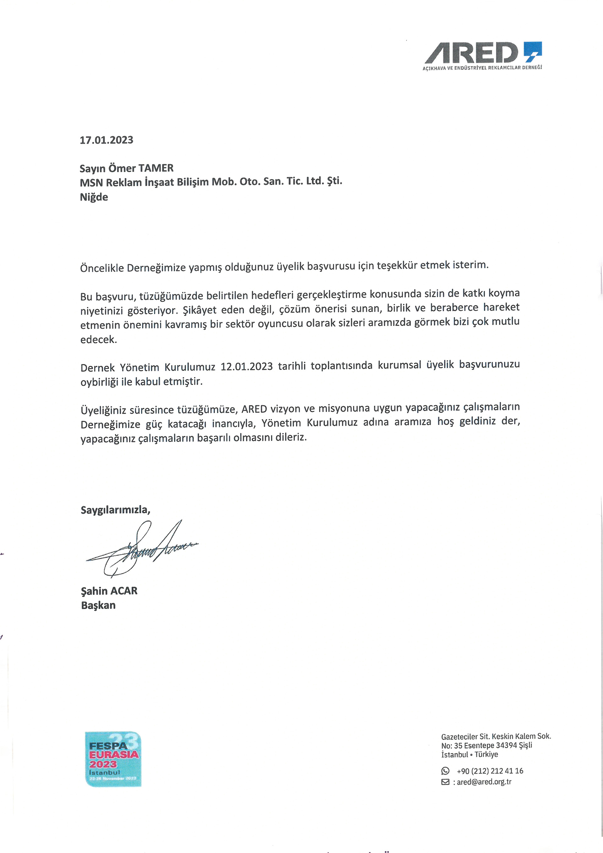 FESPA EURASIA 2023 ARED SERTIFIKA